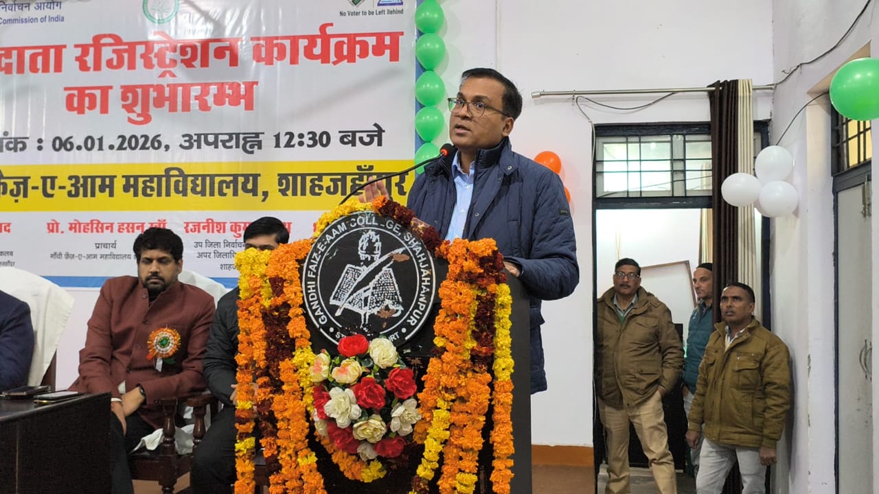 Shahjahanpur : यूपी के शाहजहांपुर में भारत निर्वाचन आयोग के निर्देशानुसार जिला निर्वाचन अधिकारी/जिलाधिकारी धर्मेंद्र प्रताप सिंह ने गांधी फैज-ए-आम महाविद्यालय में मतदाता रजिस्ट्रेशन कार्यक्रम का गुब्बारे उड़ाकर एवं दीप प्रज्वलित कर शुभारंभ किया। इसके उपरांत उन्होंने वोटर रजिस्ट्रेशन कक्ष का फीता काटकर उद्घाटन किया। जिलाधिकारी ने जानकारी देते हुए बताया कि यह मतदाता रजिस्ट्रेशन कार्यक्रम 6 जनवरी से 6 फरवरी तक संचालित किया जा रहा है।