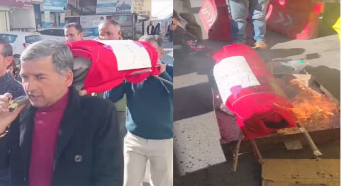 शिमला : संजौली की विवादित मस्जिद को ध्वस्त करने की मांग को लेकर चल रहे क्रमिक अनशन के बाद शनिवार को हिंदू संघर्ष समिति ने सरकार के खिलाफ जोरदार प्रदर्शन किया। इसी दौरान प्रदर्शनकारियों ने शव यात्रा निकालकर पुतला दहन भी किया।