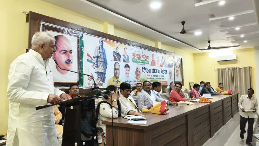 सीतापुर। भारतीय जनता पार्टी जिला कार्यालय पर जिला अध्यक्ष राजेश शुक्ला की अध्यक्षता में भारत के प्रथम गृहमंत्री लौह पुरुष सरदार वल्लभभाई पटेल की 150 वीं जयंती पर कार्य योजना बैठक संपन्न हुई बैठक में मुख्य अतिथि के रूप में जिले के प्रभारी मंत्री मंयकेश्वर शरण सिंह व विशिष्ट अतिथि के रूप में जिला प्रभारी नीरज सिंह उपस्थित रहे। कार्यक्रम की अध्यक्षता जिला अध्यक्ष राजेश शुक्ला द्वारा की गई। कार्यक्रम में मुख्य रूप से सरदार पटेल की 150 वीं जयंती के उपलक्ष में प्रदेश नेतृत्व के द्वारा घोषित कार्यक्रमों की रूपरेखा पर विस्तार से चर्चा की गई एवं कार्यक्रमो के कुशल संचालन के लिए टीमों का गठन भी किया गया।
