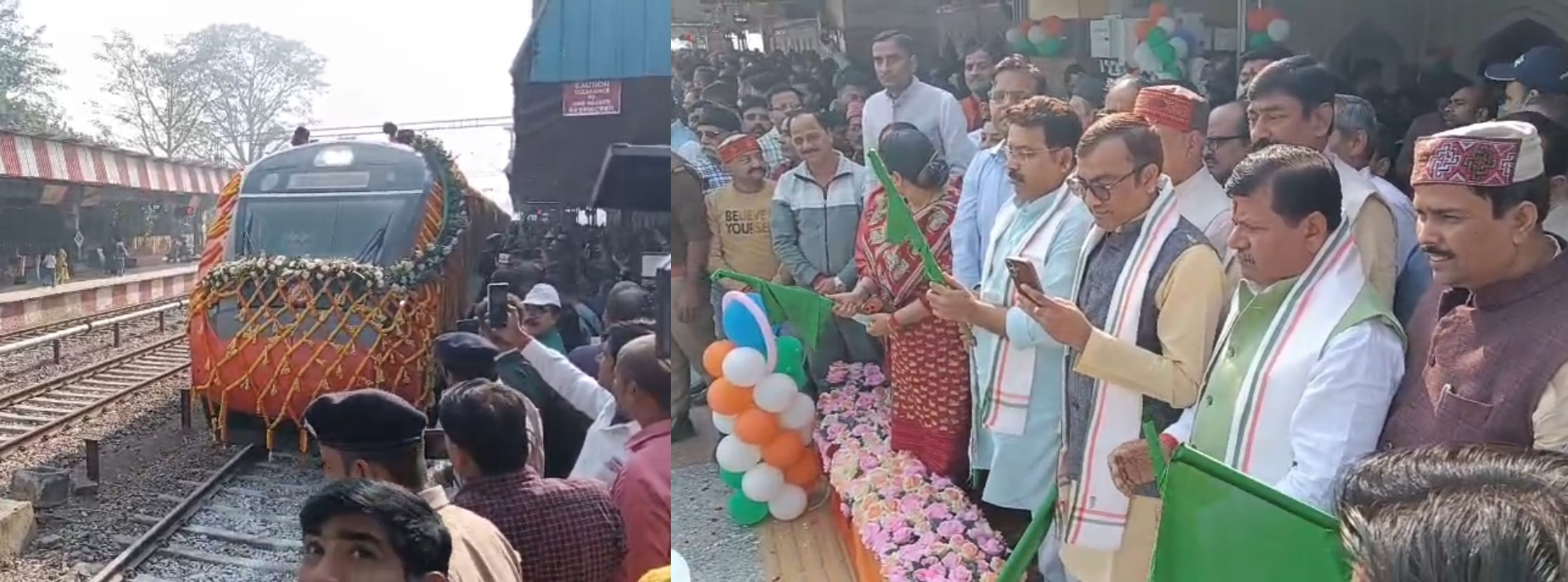स्टेशन पर एक भावपूर्ण कार्यक्रम का आयोजन किया गया था। इस दौरान लगाई गई एलईडी टीवी के माध्यम से मौके पर मौजूद सभी लोगों को प्रधानमंत्री नरेंद्र मोदी के हरी झंडी दिखाने और उनके उद्बोधन का सीधा प्रसारण भी दिखाया गया।
