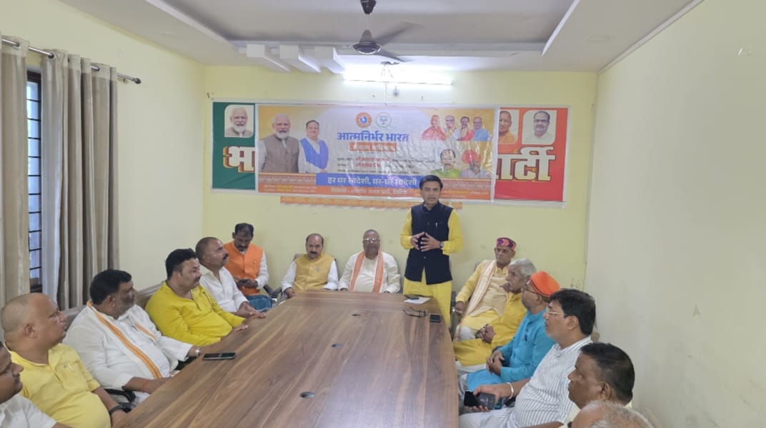 जिलाध्यक्ष भूपेंद्र सिंह ने कहा कि भारत को आत्मनिर्भर बनाने के लिए स्वदेशी अपनाना होगा तथा विदेशी वस्तुओं पर निर्भरता कम करनी होगी। बरहज विधायक दीपक मिश्र शाका ने कहा कि प्रधानमंत्री नरेंद्र मोदी के विकसित भारत के संकल्प को पूरा करना है तो हमें वोकल फॉर लोकल पर दृढ़ता के साथ कार्य करना होगा। बैठक का संचालन अभियान के संयोजक व जिला महामंत्री प्रमोद शाही ने किया। इस दौरान जिला पंचायत अध्यक्ष गिरीश चंद तिवारी ने भी अपने विचार व्यक्त किए। बैठक में प्रमुख रूप से पूर्व जिलाध्यक्ष विजय कुमार दुबे, जिला उपाध्यक्ष राजेश कुमार मिश्रा, संजय सिंह एडवोकेट, जयनाथ कुशवाहा गुड्डन, सचिंद्र शाही दीपू, रामजी सिंह, नगर अध्यक्ष रमेश वर्मा, छठू यादव सहित अन्य लोग मौजूद रहे।