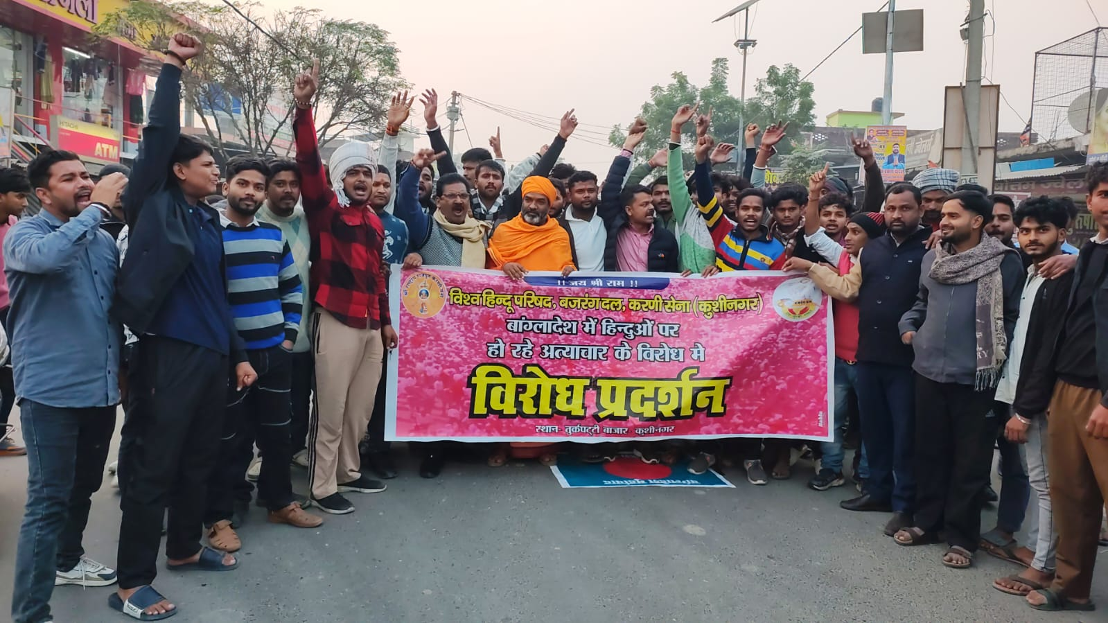 कुशीनगर के तुर्कपट्टी में बांग्लादेश में हिंदुओं पर अत्याचार के विरोध में जोरदार प्रदर्शन