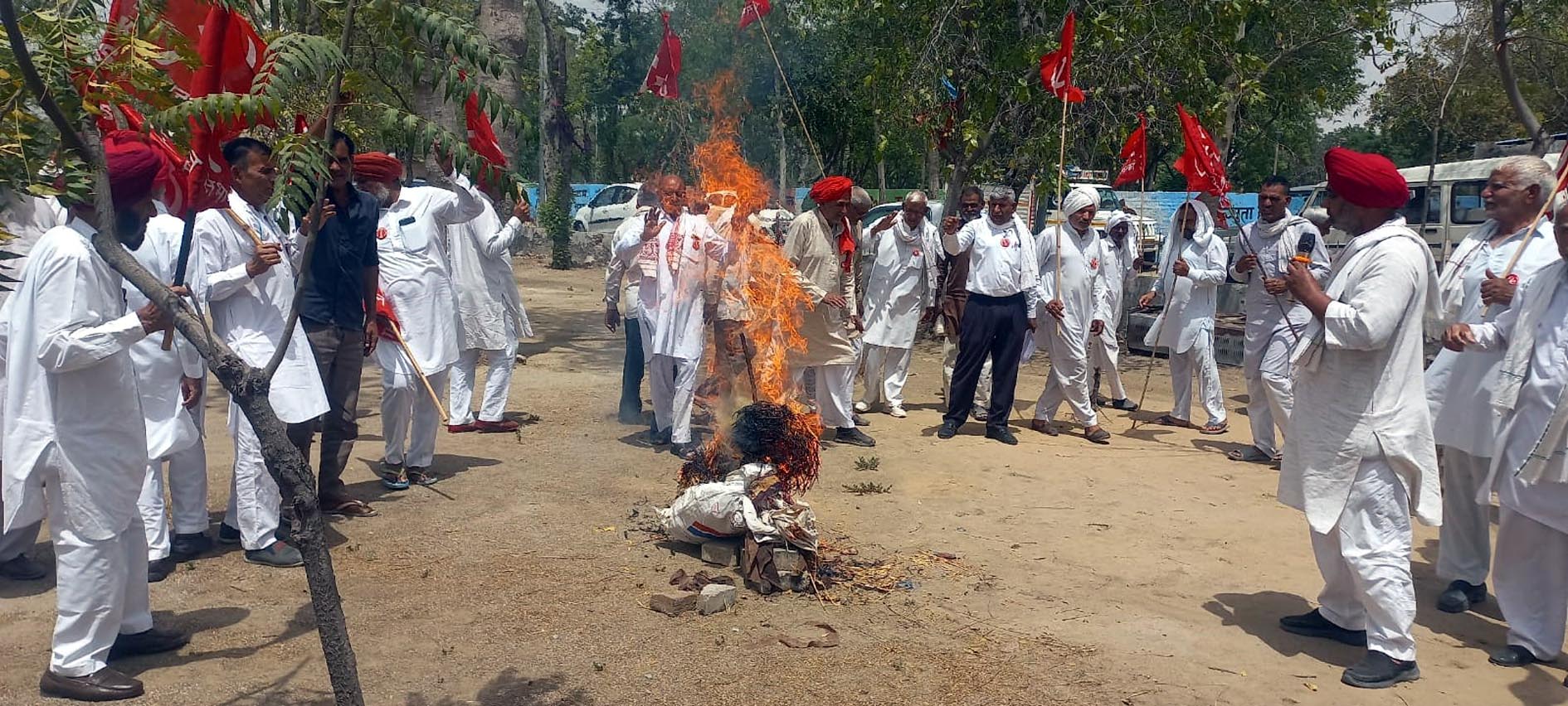 फतेहाबाद : अमेरिकी उपराष्ट्रपति की भारत यात्रा के खिलाफ किसान सभा ने किया प्रदर्शन, पुतला फूंका