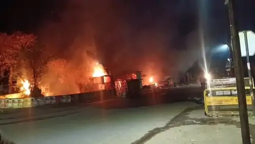 भरतपुर : आग लगने से तीन गैस सिलेंडर फटे, 10 दुकानें जलकर राख
