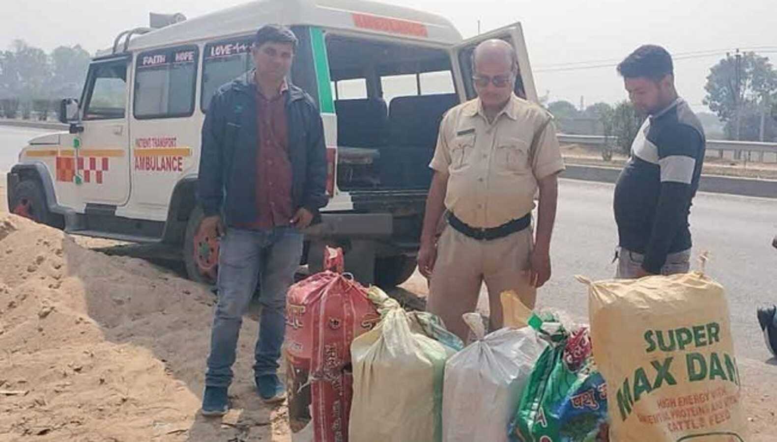 एंबुलेंस से गांजे की तस्करी : वाहन चेकिंग अभियान के तहत पुलिस ने कसा शिकंजा, 140 किलो गांजा बरामद