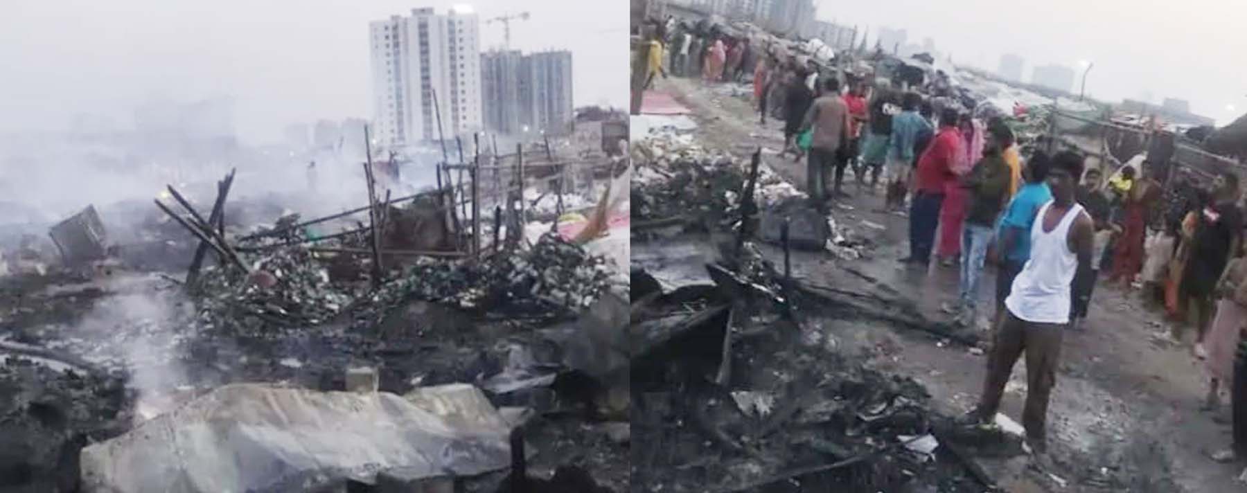 गुरुग्राम के सेक्टर-102 में आग लगने से 50 झुग्गियां जलकर हुई राख