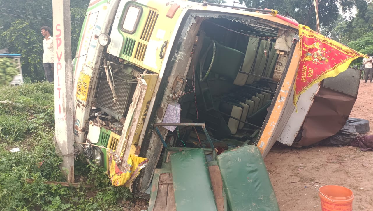 Bahraich : मनोना धाम से लौटती यात्रियों से भरी बस पलटी, 25 घायल