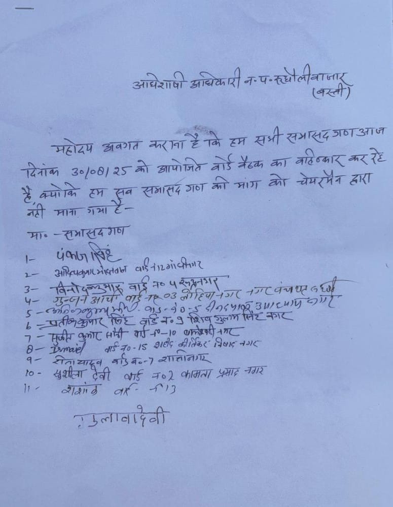 बस्ती : रुधौली नगर पंचायत बोर्ड बैठक का सदस्यों ने एक बार फिर किया बहिष्कार