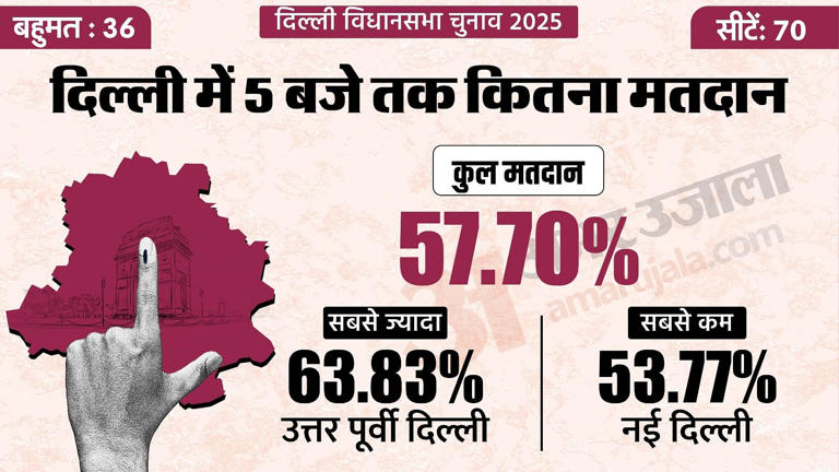 दिल्ली विधानसभा चुनाव में 5 बजे तक 57.70% मतदान