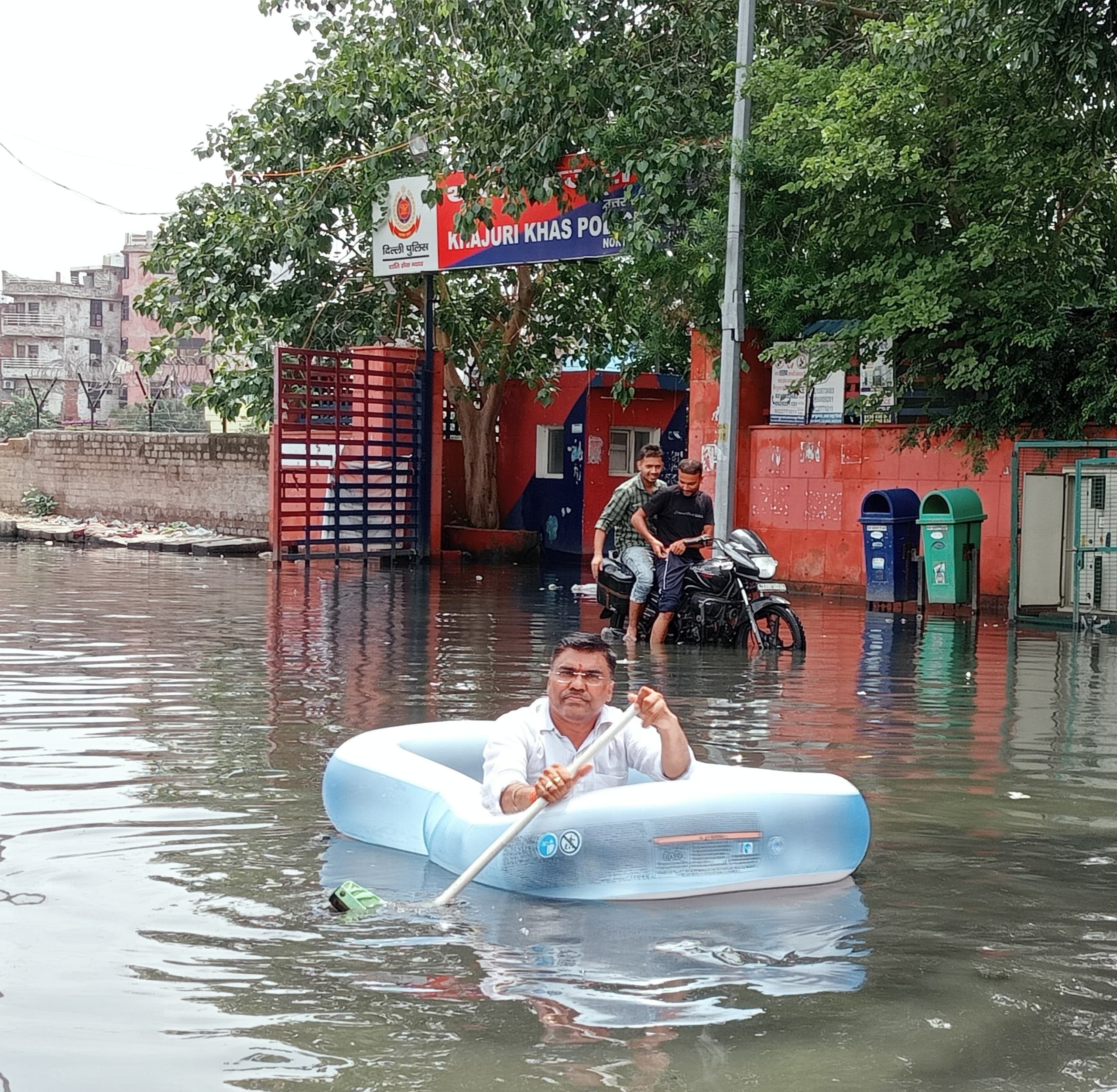 नई दिल्ली : खजूरी खास में बारिश बनी मुसीबत, AAP नेता ने नाव चलाकर जताया विरोध