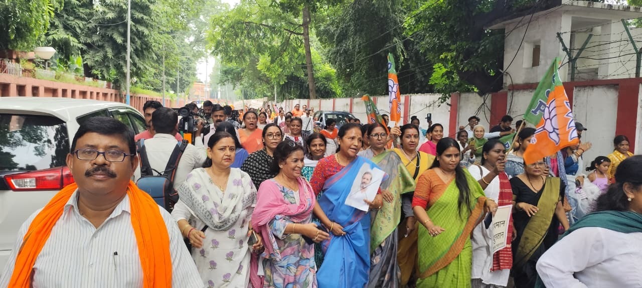 भाजपा महिला मोर्चा ने दिया धरना… कहा….गाली देना बिहार की सांस्कृतिक विरासत का अपमान
