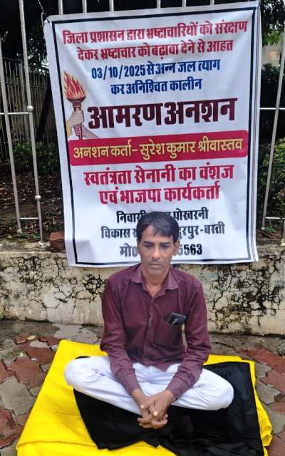 Basti : ग्राम प्रधान के भ्रष्टाचार के खिलाफ डीएम कार्यालय पर आमरण अनशन शुरू