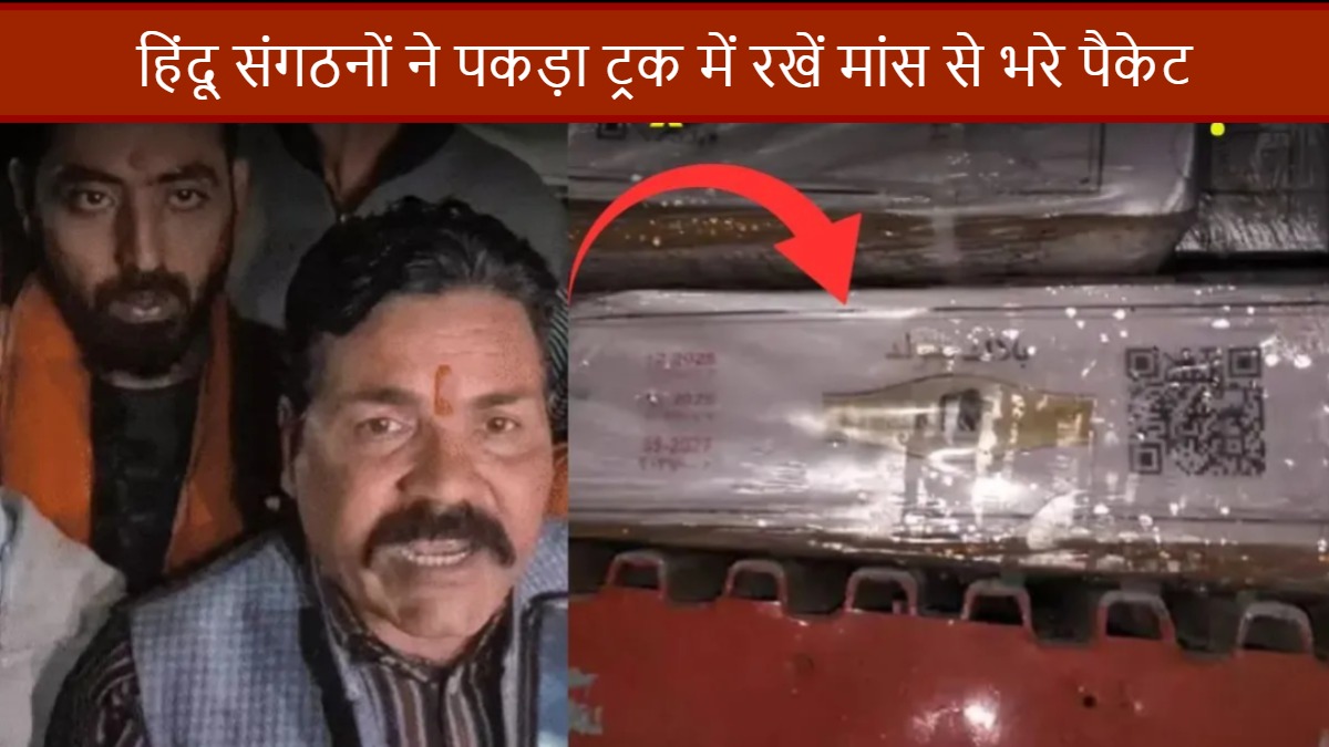 भोपाल : हिंदू संगठन के सदस्यों ने मांस के पैकेट से भरा ट्रक पकड़ा, मौके पर जमा भीड़ ने की नारेबाजी