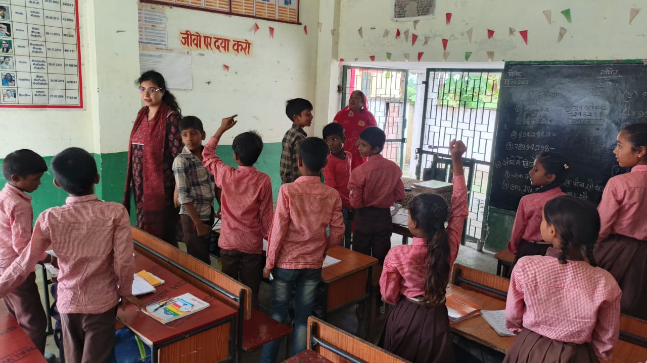 Maharajganj : बीएसए बनीं शिक्षक, बच्चों संग ब्लैकबोर्ड पर कुरेदा अक्षर ज्ञान