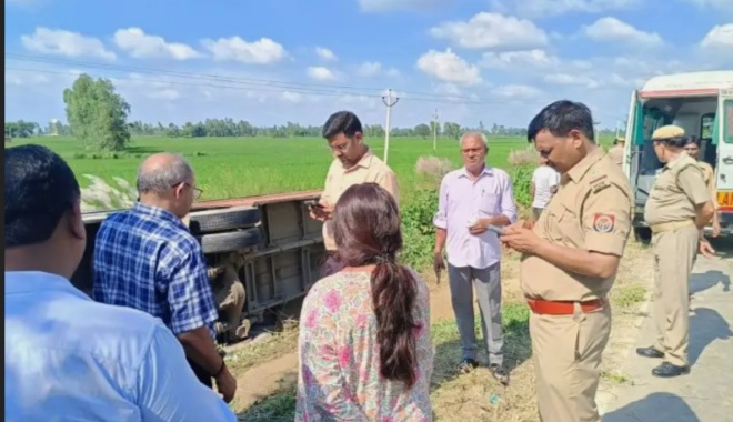हरदोई में बड़ा हादसा: ओवरटेक करते समय पलटी रोडवेज बस, तीन यात्री घायल