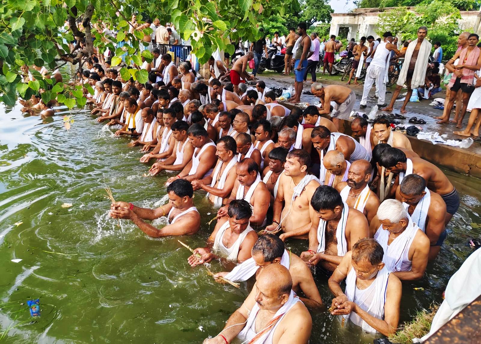 Banda : पितृपक्ष नदी-तालाबों में तर्पण करने वालों की उमड़ी भीड़