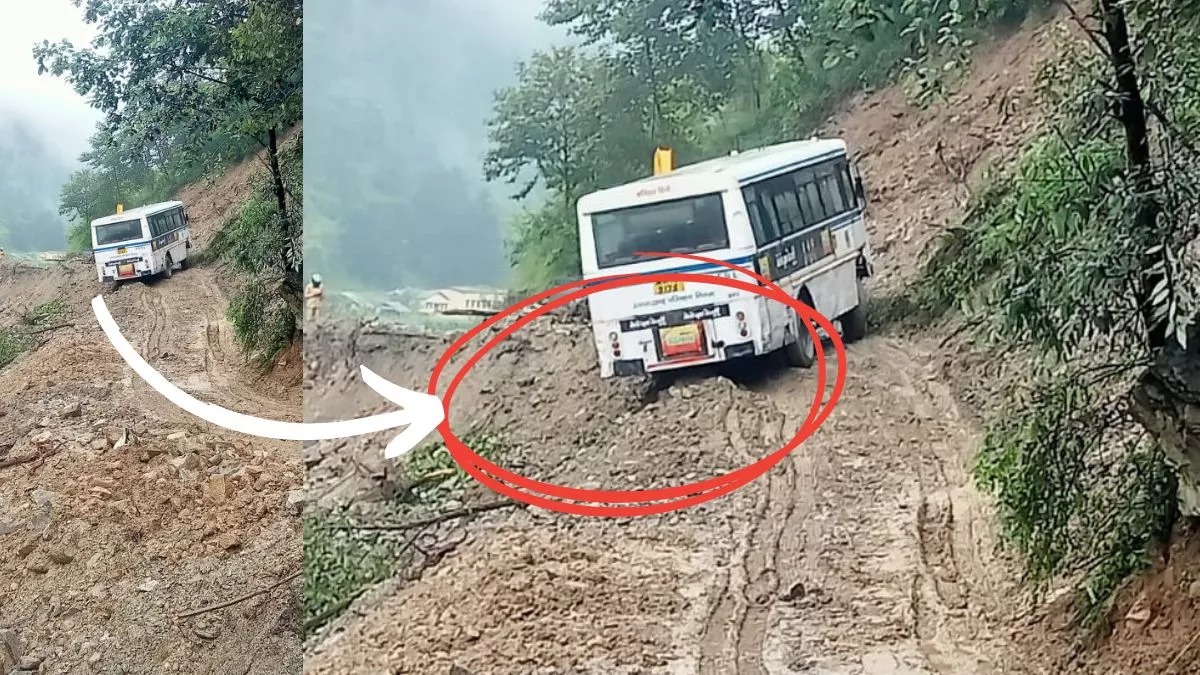 धराली में टला बड़ा हादसा : भूस्खलन जोन में फिसली बस, नीचे लटका पिछला टायर, चिल्लाने लगे यात्री