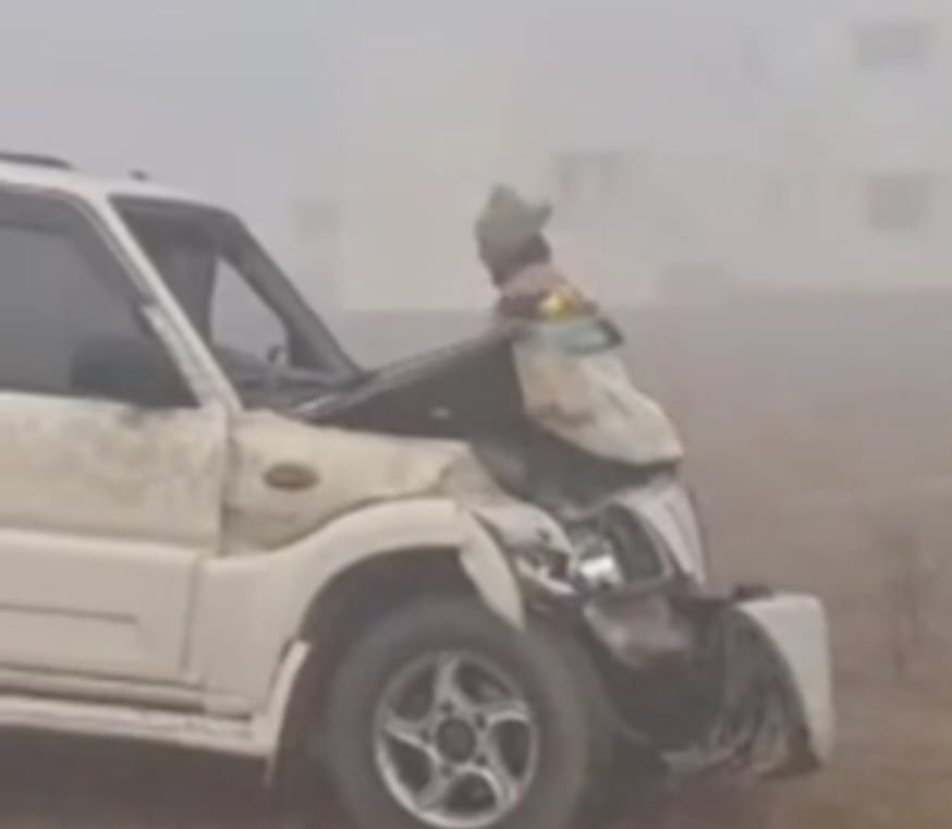 Hathras : कोहरे के कारण फॉर्च्यूनर कार खड़े ट्रक से टकराई, बड़ा हादसा टला