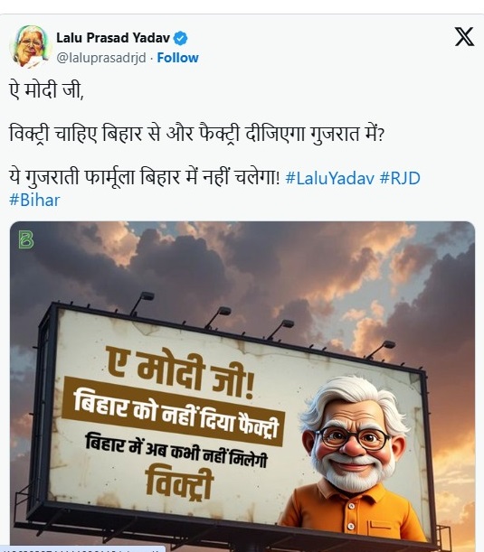 बिहार चुनावी संग्राम : लालू यादव ने प्रधानमंत्री पर कसा तंज