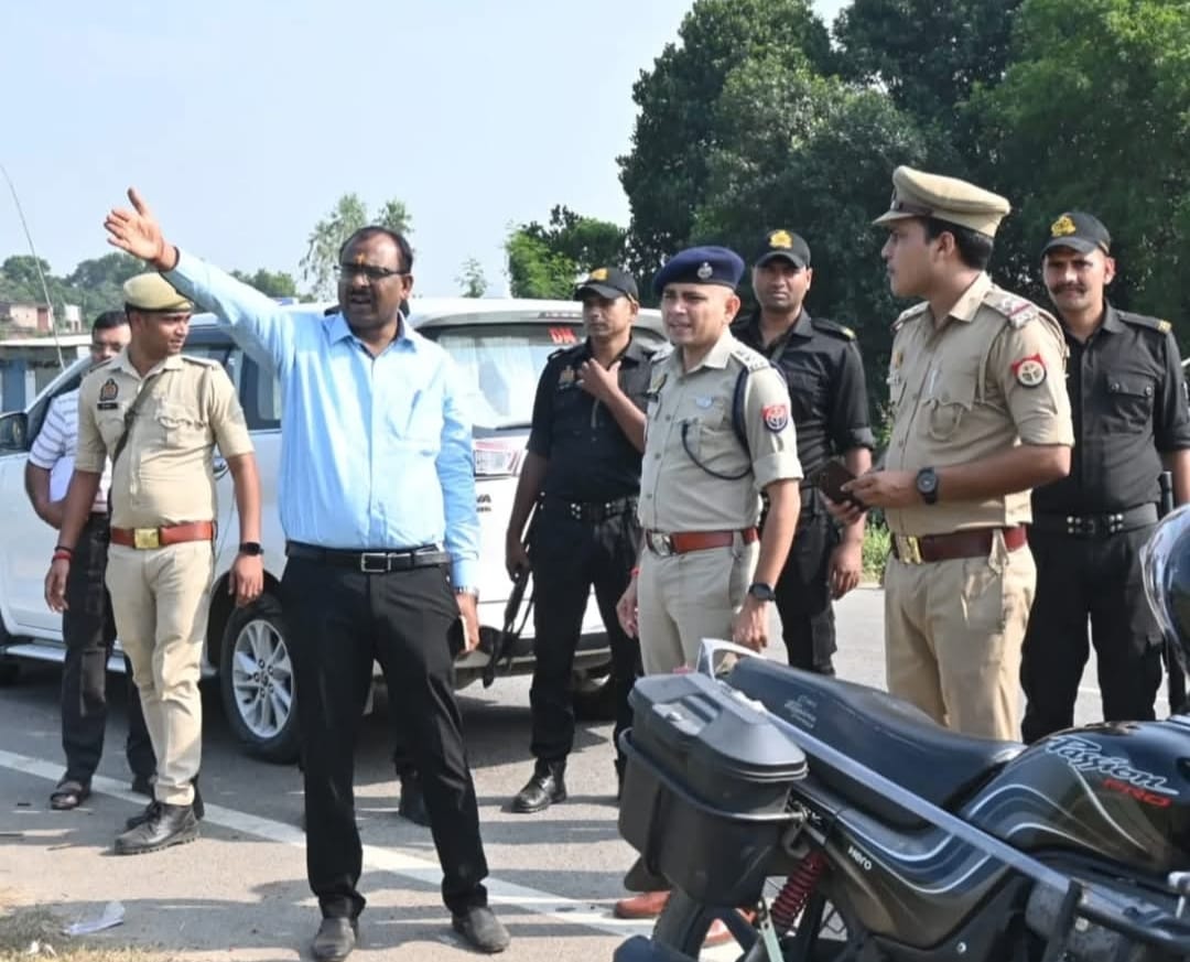 Maharajganj : डीएम और एसपी ने मूर्ति विसर्जन स्थलों का किया निरीक्षण, सुरक्षा के पुख्ता इंतजाम