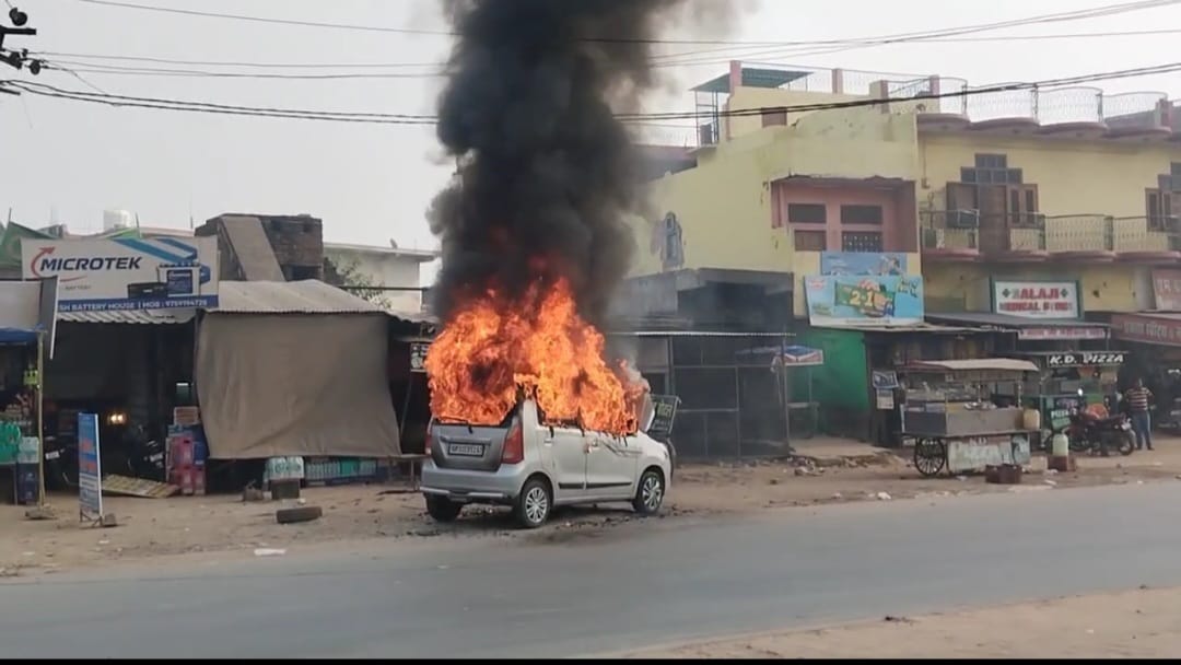 Mainpuri : बस स्टैंड के पास खड़ी वैगनआर में लगी भीषण आग, कुछ ही मिनटों में कार जल कर हुई खाक