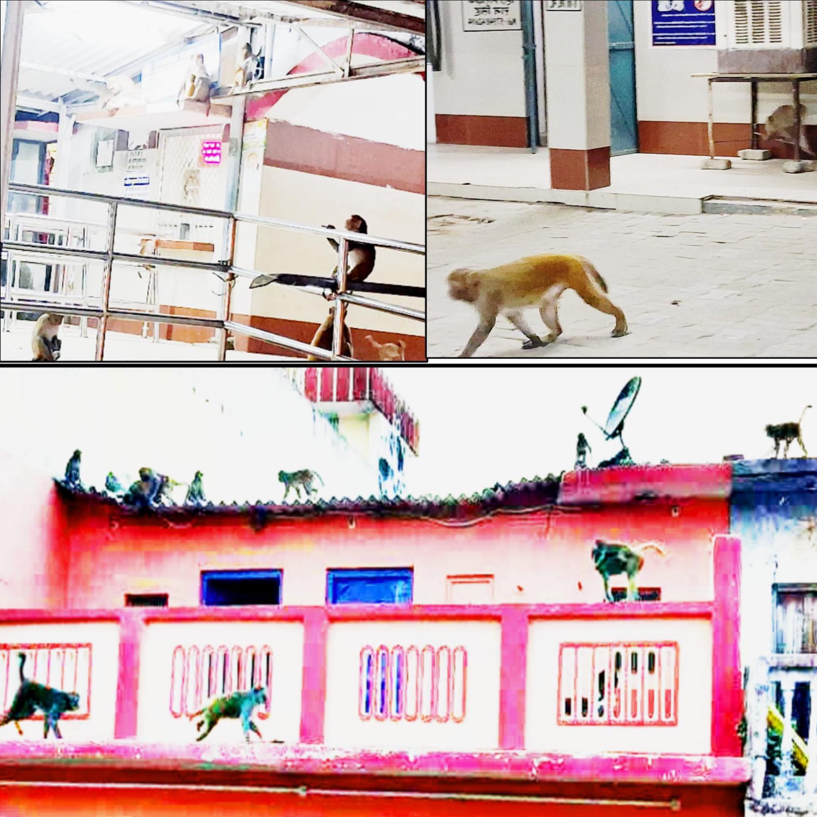 महराजगंज : रेलवे स्टेशन से गलियों तक बंदरों का कब्ज़ा, जनजीवन अस्त-व्यस्त