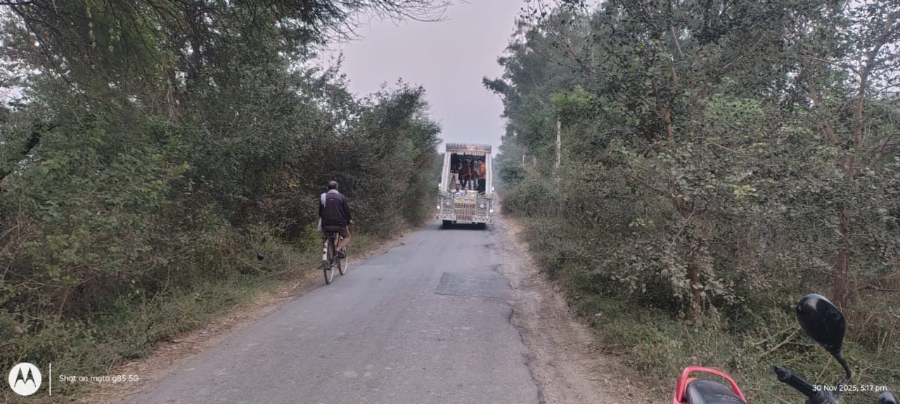 Jalaun : सड़क हादसे की दहशत, गड्ढेदार और झाड़ियों से घिरी सड़क बनी राहगीरों के लिए खतरा