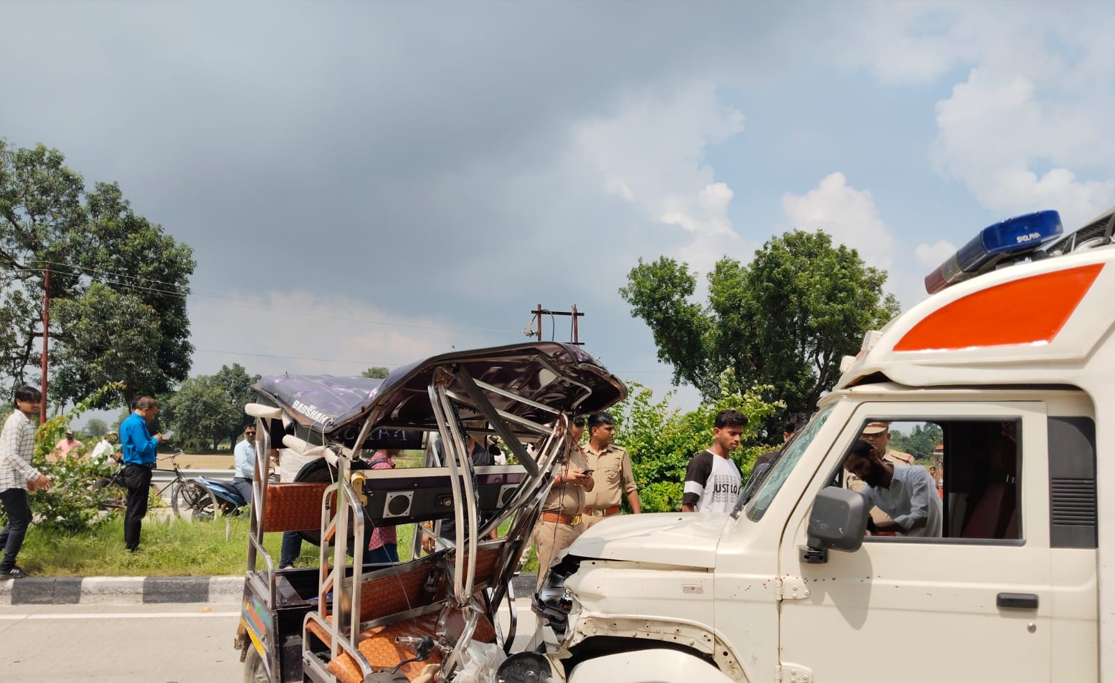 Kannauj : एंबुलेंस की टक्कर से ई-रिक्शा चालक की मौत, निजी स्कूल की चार टीचर घायल