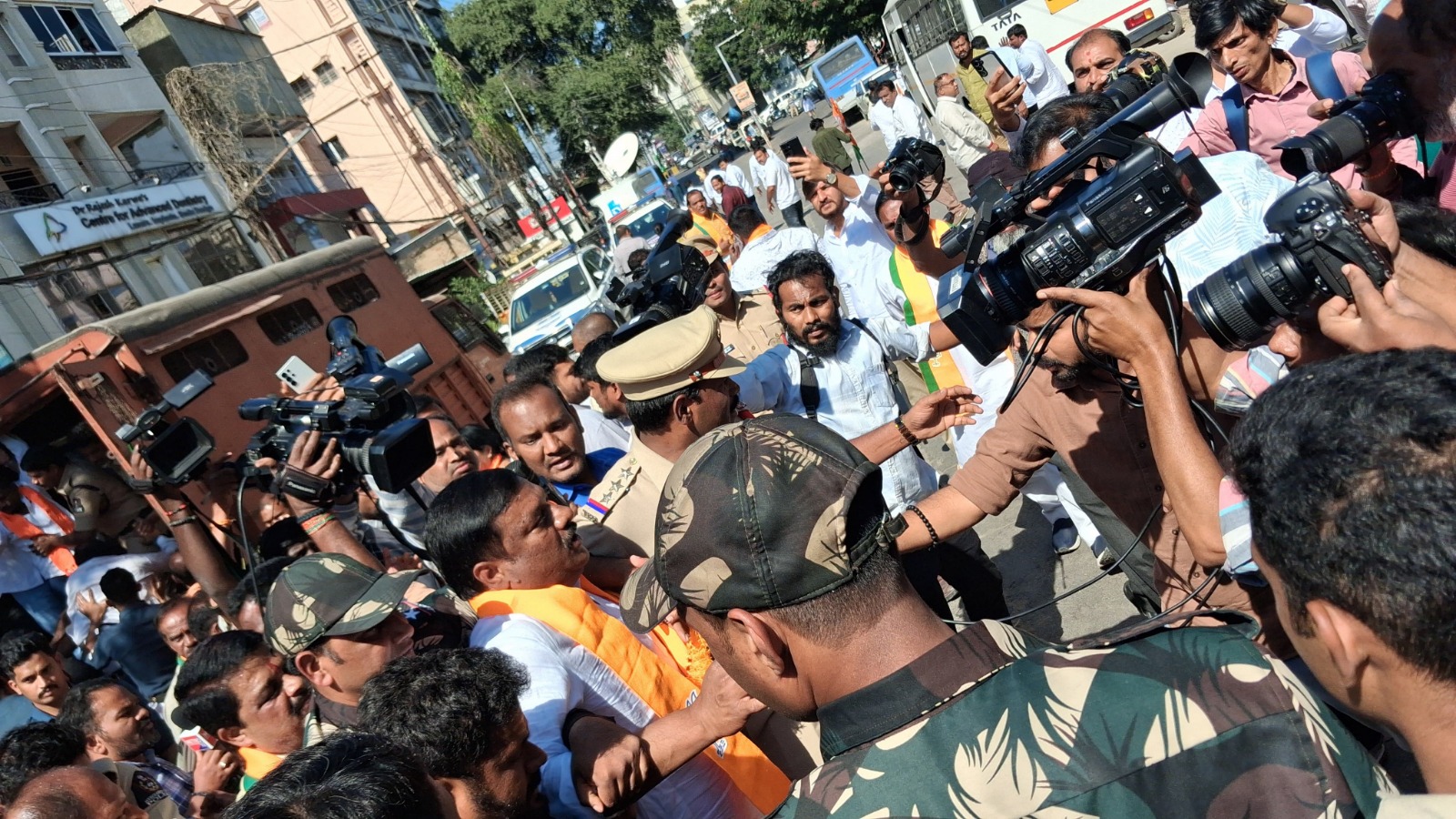 दिग्गज फुटबाॅलर मेस्सी के साथ मुख्यमंत्री रेड्डी के मैच के विरोध में भाजपा का प्रदर्शन, जनता के धन का दुरुपयोग का आराेप