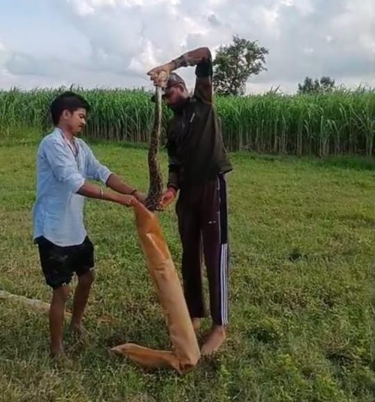 लखीमपुर खीरी : सिंगाही रोड पर दिखा आठ फीट का अजगर, वन विभाग ने किया सुरक्षित रेस्क्यू