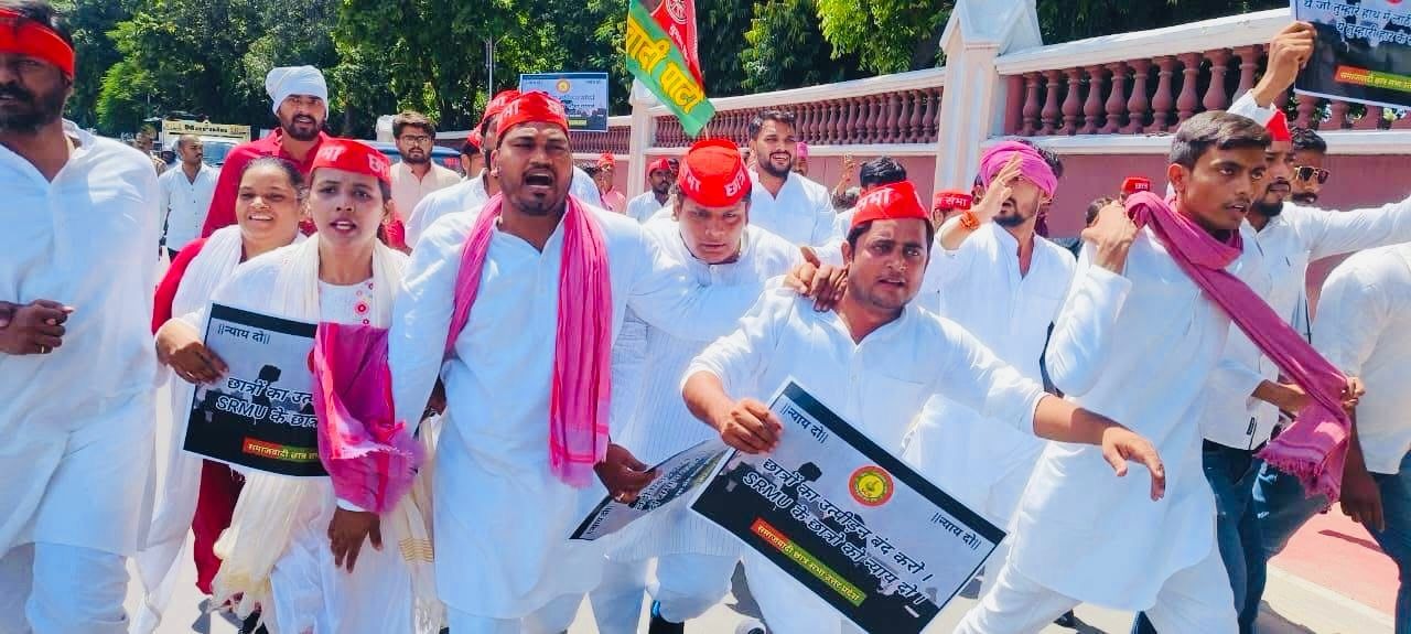 एसआरएमयू की फर्जी डिग्री मामला : छात्रों पर लाठीचार्ज के विरोध में सड़कों पर उतरे सपाई, राजभवन के सामने किया प्रदर्शन, गिरफ्तार