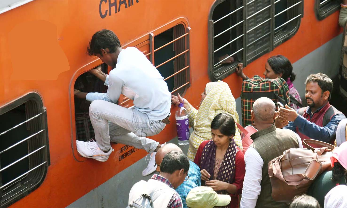 आपात खिड़की से ट्रेन में घुसते लोग: हादसे के बावजूद अव्यवस्था में कोई कमी नहीं