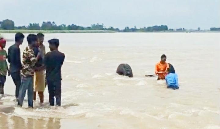 शाहजहांपुर: अनाज से भरी ट्रैक्टर-ट्रॉली बाढ़ के पानी में पलटी, गोताखोरों ने बचाई जान