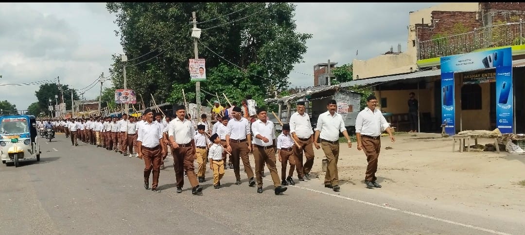 Bahraich : बेडनापुर में स्वयंसेवकों ने निकाला पथ संचलन