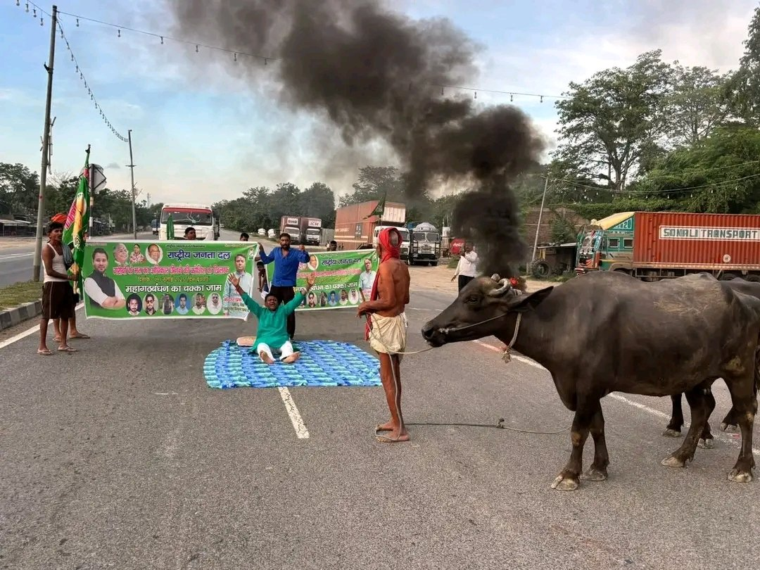 बिहार बंद! जेसीबी लाकर की आगजनी, भैंसो ने रोका रास्ता… RJD का अनोखा प्रदर्शन, राहुल-तेजस्वी करेंगे पैदल मार्च
