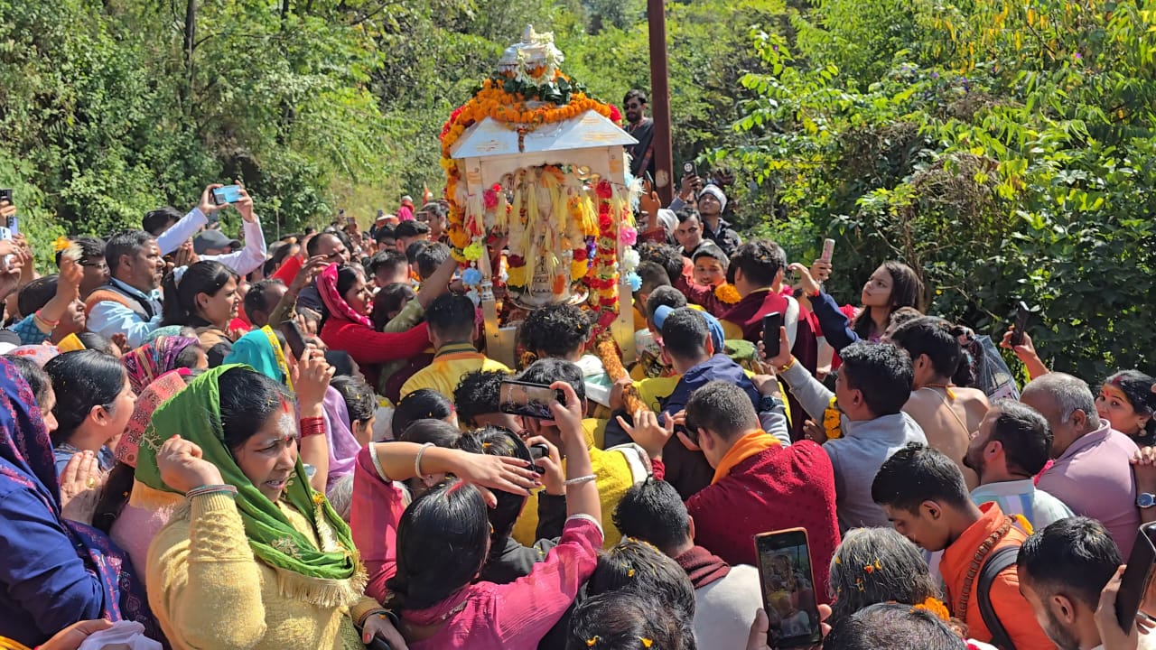 रुद्रप्रयाग : स्थानीय वाद्य यंत्रों, आर्मी बैंड की मधुर धुनों और हजारों श्रद्धालुओं की जयकारों के बीच आज बाबा केदार की पंचमुखी चल विग्रह उत्सव डोली ओंकारेश्वर मंदिर, ऊखीमठ पहुँची। इस अवसर पर तीर्थ पुरोहित समाज और स्थानीय श्रद्धालुओं ने डोली का भव्य स्वागत किया। मौके पर स्थानीय विधायक आशा नौटियाल भी उपस्थित रहीं।
