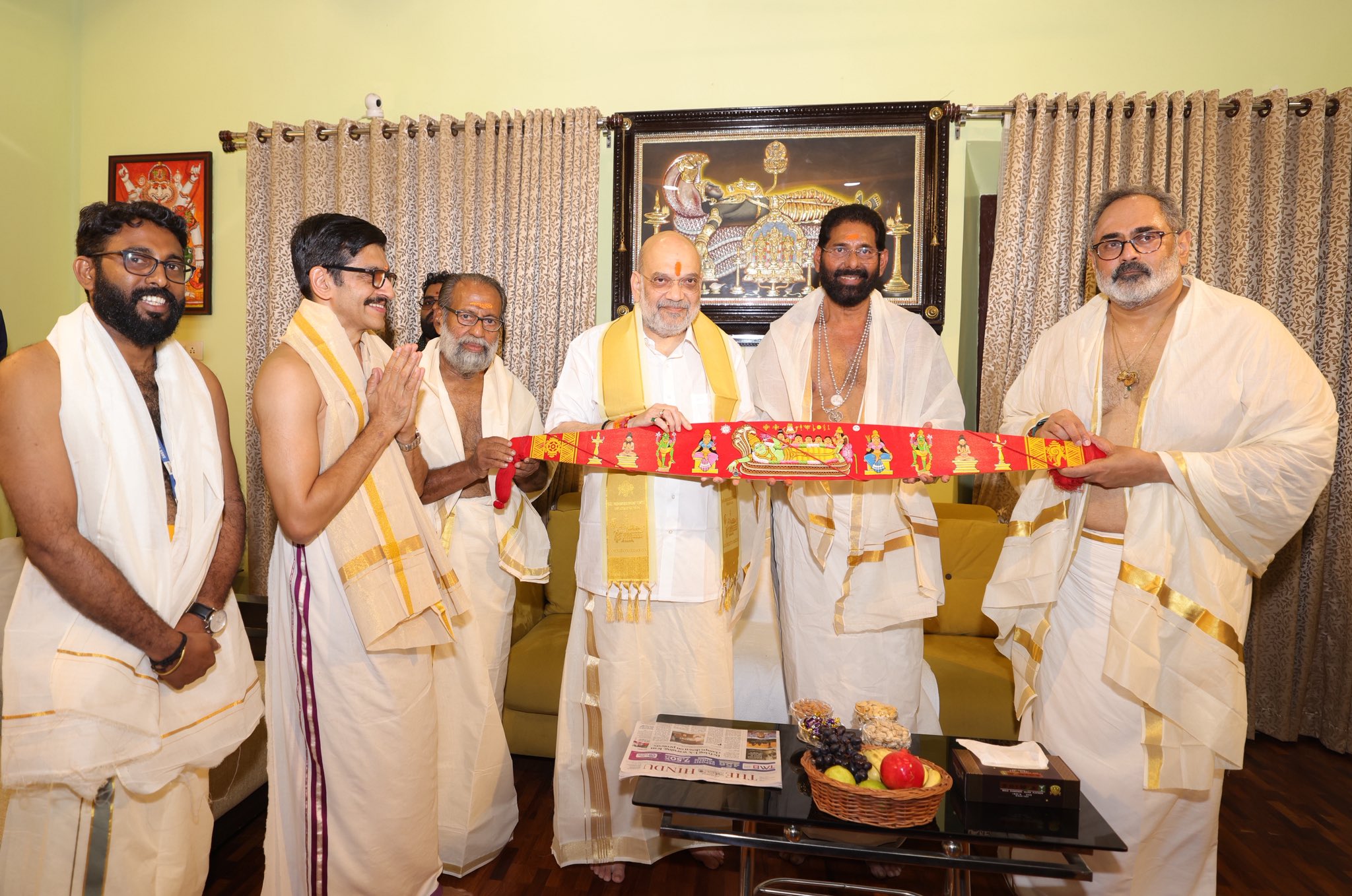 अमित शाह ने कहा कि उन्होंने पहले वादा किया था कि यदि तिरुवनंतपुरम नगर निगम में भाजपा का मेयर बनेगा, तो वे श्री पद्मनाभस्वामी मंदिर में दर्शन करेंगे। इसी क्रम में उन्होंने रविवार सुबह मंदिर में पूजा-अर्चना की। दर्शन-पूजन के बाद उन्होंने कहा कि भगवान के आशीर्वाद से केरल में परिवर्तन की शुरुआत हो चुकी है। उन्होंने कहा कि भाजपा हमेशा श्रद्धालुओं के अधिकारों की रक्षा के लिए आगे रही है। उन्होंने भरोसा दिलाया कि केंद्र की नरेन्द्र मोदी सरकार वक्फ भूमि विवादों में ईसाई और हिंदू परिवारों को न्याय दिलाने के लिए पूरी तरह प्रतिबद्ध है। साथ ही उन्होंने एलडीएफ और यूडीएफ पर तुष्टीकरण की राजनीति करने का आरोप लगाते हुए कहा कि भाजपा की नीति “सबके लिए न्याय, किसी के लिए तुष्टीकरण नहीं” की है, जिसे केरल की जनता स्वीकार करेगी।