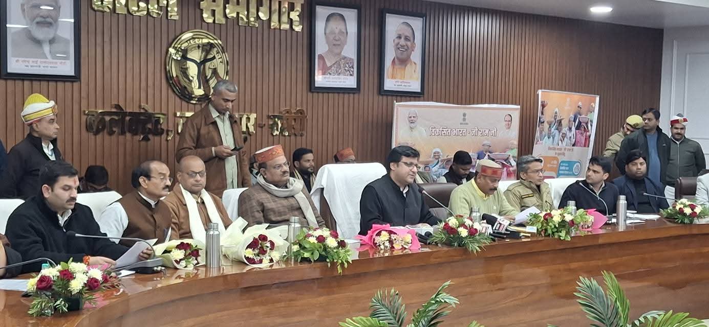 Lakhimpur Kheri : कलेक्ट्रेट स्थित अटल सभागार में केंद्र सरकार की नई विकसित भारत–गारंटी फॉर रोजगार एंड आजीविका मिशन ग्रामीण (वीबी-जी रामजी) योजना को लेकर प्रभारी मंत्री नितिन अग्रवाल को प्रेस वार्ता करने पहुंचे। ग्रामीण विकास की दिशा में एक महत्वपूर्ण पहल के रूप में इसे पेश करते हुए मंत्री ने योजना के उद्देश्यों और जनपद में इसके क्रियान्वयन की जानकारी दी।