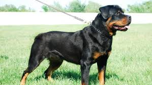 रोटवीलर अपने भारी शरीर और ताकत के लिए जाना जाता है।