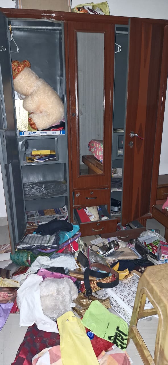 घर लौटने पर परिजनों को घटना की जानकारी हुई, जिसके बाद पुलिस को सूचना दी गई। मौके पर पहुंची पुलिस ने जांच शुरू कर दी है और आसपास लगे सीसीटीवी कैमरों की फुटेज खंगाली जा रही है। बड़ी चोरी की इस वारदात के बाद स्थानीय लोगों में रोष है और सुरक्षा व्यवस्था को लेकर सवाल उठाए जा रहे हैं।