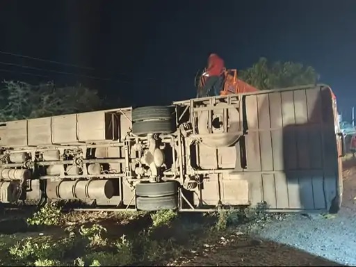 बस में कुल 40 यात्री सवार थे। हादसे के बाद कुछ देर के लिए हाईवे पर जाम लग गया, जिसे पुलिस ने नियंत्रित किया।