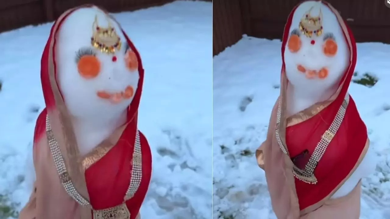 New Delhi : सर्दियों का मौसम आते ही दुनिया भर में लोग बर्फ से बने स्नोमैन बनाने में मस्ती करते हैं। आमतौर पर लोग साधारण स्नोमैन बनाते हैं, जैसे गोल-गोल बॉल्स वाली बॉडी, गाजर की नाक, स्कार्फ और टोपी पहनाकर। लेकिन कुछ लोग इतनी खूबसूरत और मजेदार क्रिएटिविटी दिखाते हैं कि देखने वाले हंस-हंसकर लोट-पोट हो जाते हैं। हाल ही में कनाडा से एक ऐसा ही मजेदार वीडियो सोशल मीडिया पर वायरल हो गया है। एक इंस्टाग्राम यूजर ने एक मध्यम आकार के स्नो वुमन को पूरी तरह से भारतीय महिला की तरह सजाया है।