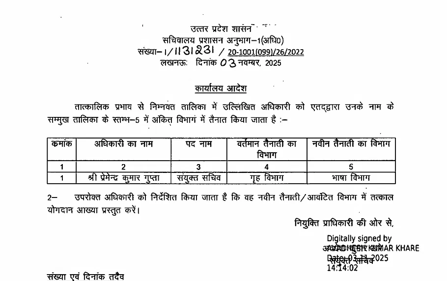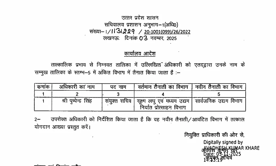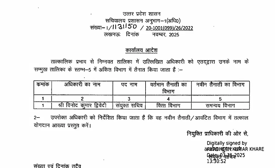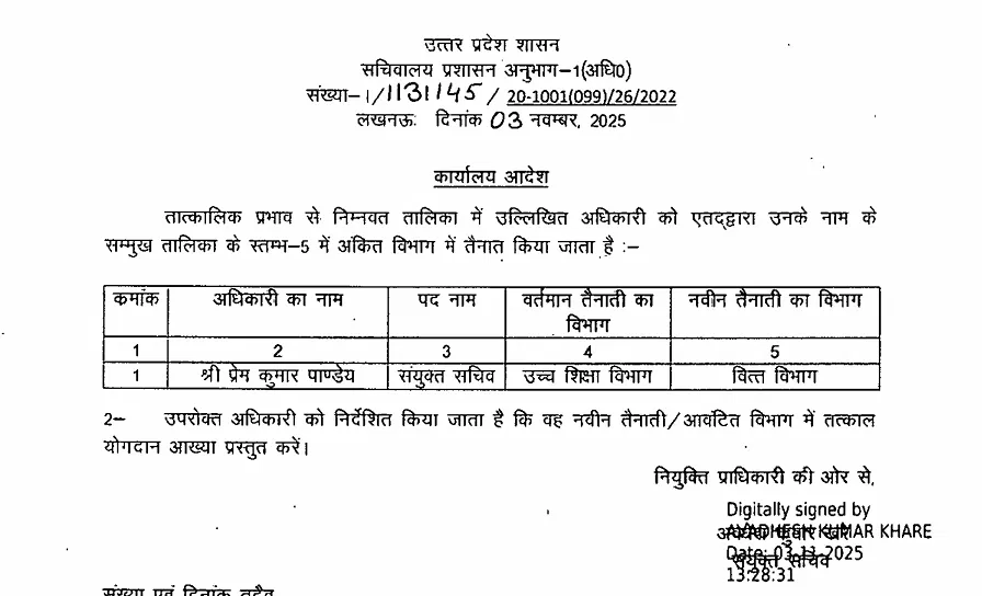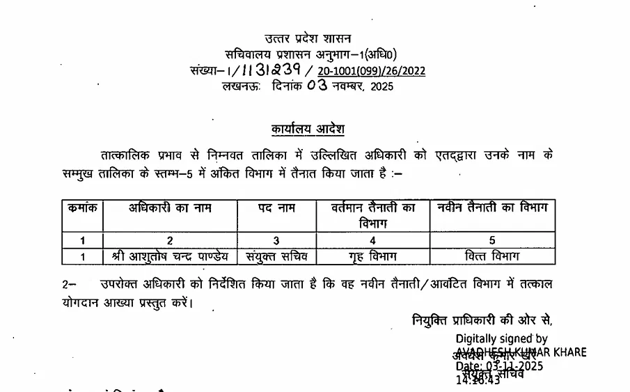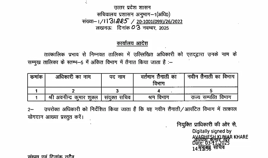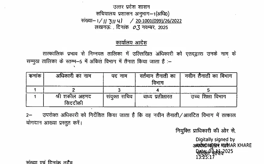 लखनऊ : यूपी सरकार ने प्रशासनिक फेरबदल करते हुए 15 संयुक्त सचिव स्तर के अधिकारियों के तबादले किए हैं। प्रमुख नामों में शकील अहमद सिद्दीकी शामिल हैं, जो लंबे समय से प्रतीक्षा सूची में थे। उन्हें अब उच्च शिक्षा विभाग में संयुक्त सचिव नियुक्त किया गया है। अन्य अधिकारियों को गृह, वित्त, स्वास्थ्य, कृषि, सिंचाई, लोक निर्माण और ऊर्जा सहित विभिन्न विभागों में नई तैनाती दी गई है।