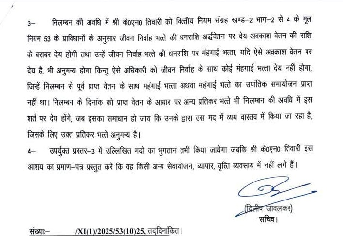 आदेश में स्पष्ट किया गया है कि परियोजना निदेशक केएन तिवारी को परीक्षा केंद्र में सुचिता बनाए रखने की जिम्मेदारी सौंपी गई थी, लेकिन पेपर के बाहर जाने से उनकी संवेदनशीलता और जिम्मेदारी निभाने की क्षमता संदिग्ध साबित हुई। प्रथम दृष्टया उनकी लापरवाही सामने आई, जिसके चलते उन्हें निलंबित किया गया।