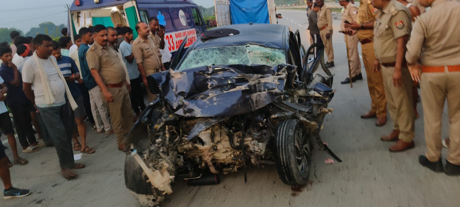 क्षेत्रीय लोगों के अनुसार कार के दोनों एयर बैग खुल गए लेकिन तेज रफ्तार के कारण आगे बैठे दोनों व्यक्ति मौत के मुंह में समा गए। महिला कार के पिछली सीट पर बैठी हुई थी।