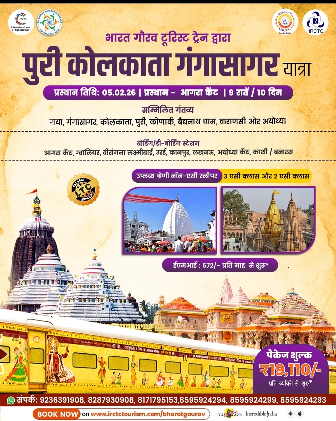 झांसी। भारतीय रेलवे खानपान और पर्यटन निगम (आइआरसीटीसी) ने धार्मिक पर्यटन को बढ़ावा देने के लिए भारत गौरव टूरिस्ट ट्रेन के विशेष पैकेज की घोषणा की है। यह यात्रा पांच फरवरी से 14 फरवरी तक चलेगी, जिसमें श्रद्धालुओं को कुल नौ रात और 10 दिनों तक देश के प्रमुख तीर्थ स्थलों का भ्रमण कराया जाएगा।